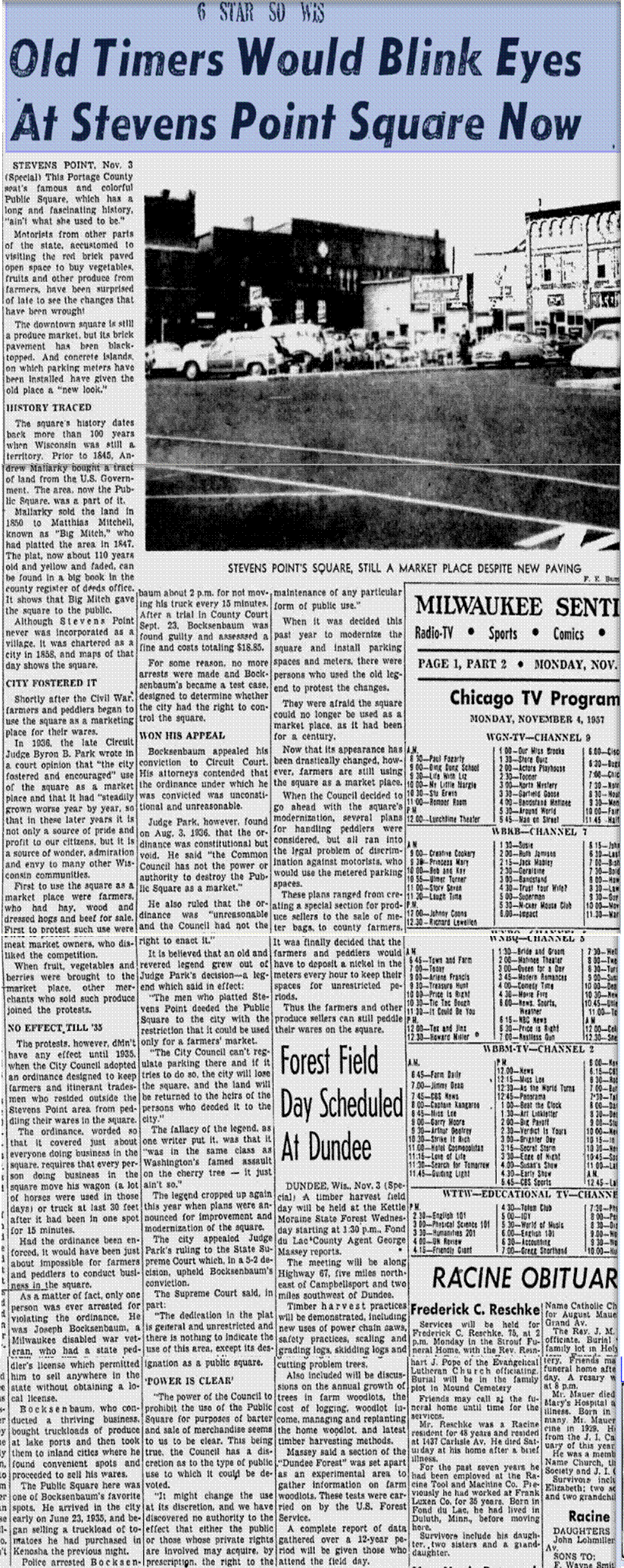 Newspaper article from the Milwaukee Sentinel on November 5, 1957
